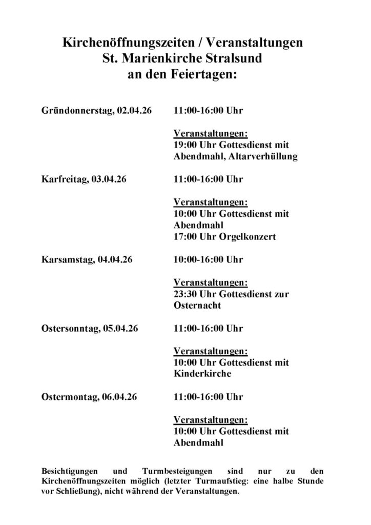 Lassen Sie sich einladen, unser Gotteshaus in Stralsund zu besuchen, lebendige Gemeinde zu erleben, an einem Gottesdienst teilzunehmen, andächtig der prächtigen Orgel zu lauschen, die Dimensionen des Bauwerkes zu erfassen, nach einer kleinen Anstrengung den Blick aus 90 m Höhe über das schöne Stralsund und seine Umgebung schweifen zu lassen oder einfach einen Moment der inneren Einkehr und Besinnung auf unseren Herrn zu finden.